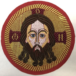 Image of Christ not made by hands Embroidered RED 5,5 inches